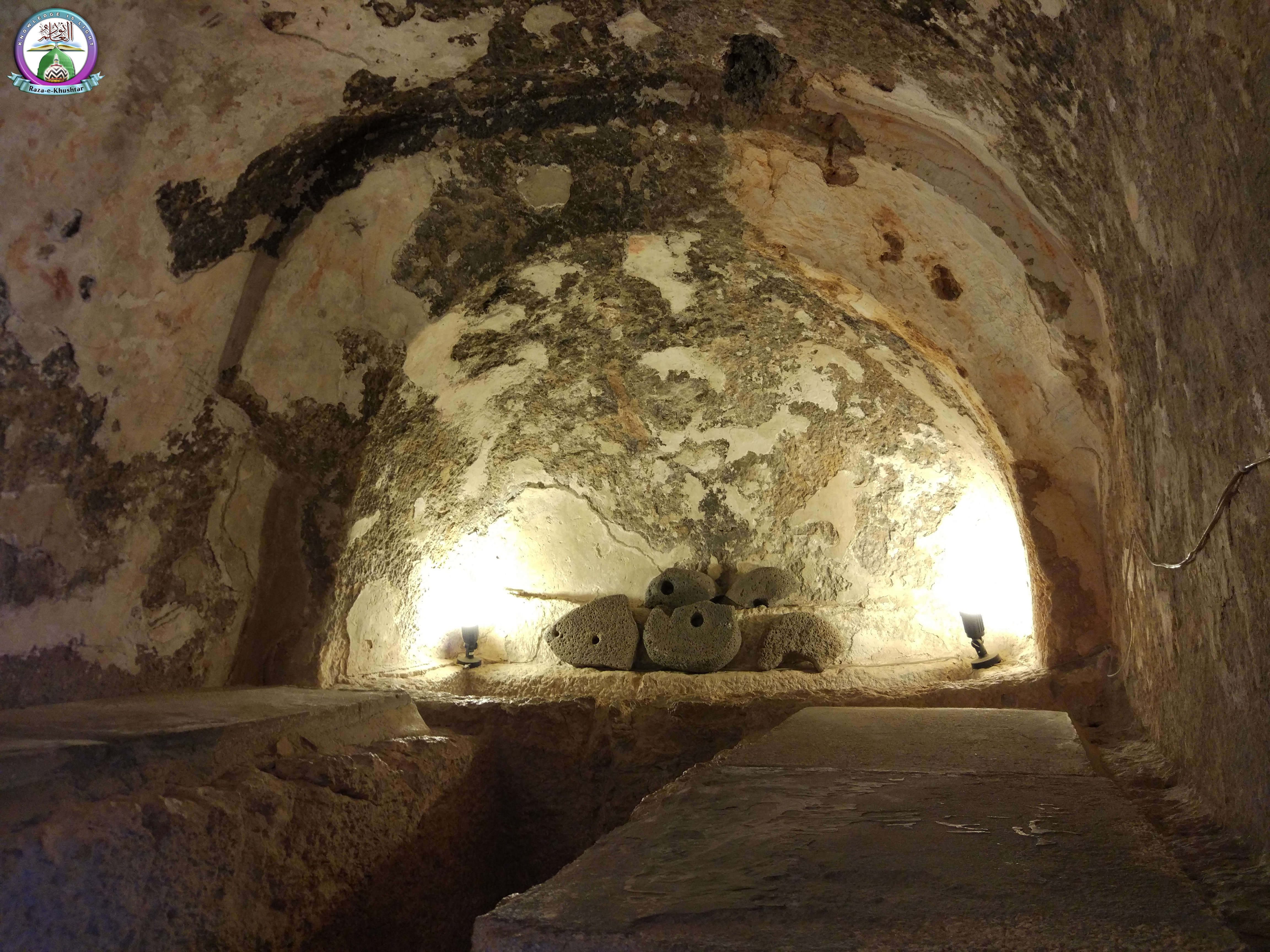 This is the cave of the Seven Sleepers situated in Jordan. This cave pertains to the Ashaab-e-Kahf (Companions of the Cave) mentioned in the Holy Qur’an. To learn more about the Ashaab-e-Kahf click on the following link: The Companions of the Cave